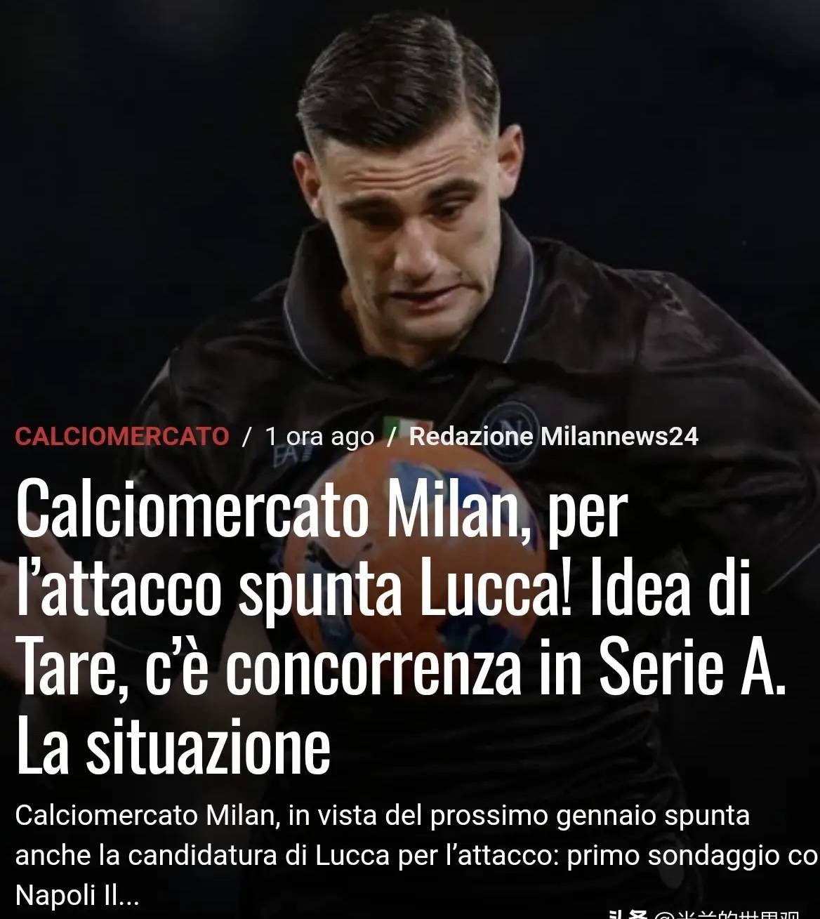 意甲知名媒体人:卢卡再次成为米兰中锋候选,前提是有前锋离队